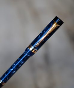STYLO BILLE PARKER DUOFOLD BLEU MARBRE & PL. OR 18 CARATS – PREMIERE GENERATION