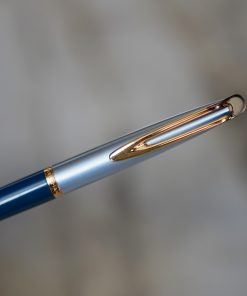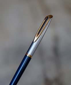 STYLO BILLE WATERMAN CF EN RESINE BLEU GRIS – CAPUCHON METAL CHROME & PL. OR