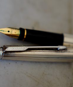 STYLO PLUME PARKER 75 ARGENT MASSIF VENDÔME GROSSES COTES- PLUME EN OR MASSIF 18 CARATS