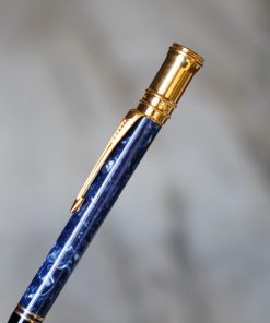 STYLO PORTE-MINES PARKER DUOFOLD RESINE BLEUE MARBREE & PL. OR 18 CARATS