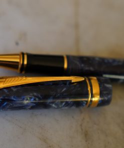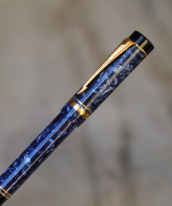 STYLO ROLLER PARKER DUOFOLD EN RESINE BLEUE MARBREE FINITION PL. OR 18 CARATS