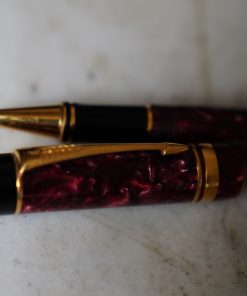 STYLO ROLLER PARKER DUOFOLD EN RESINE VIOLET MARBREE – FINITION PL. OR 18 CARATS