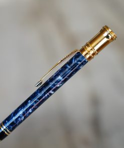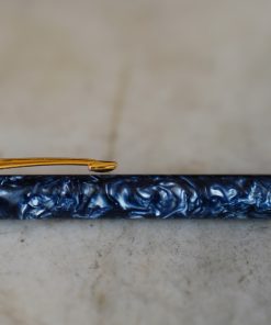 STYLO BILLE PARKER DUOFOLD EN RESINE BLEUE MARBREE & PL. OR 18 CARATS