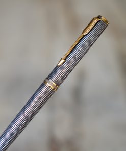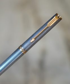 STYLO PLUME PARKER PREMIER EN ARGENT MASSIF 925 – FINITION QUADRILLEE – PLUME EN OR MASSIF 18 CARATS