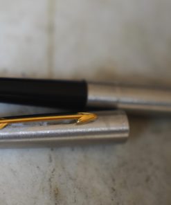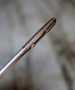 STYLO BILLE PARKER 75 VENDÔME EN ARGENT & VERMEIL 925 – FINITION LIGNEE – CABOCHON NOIR