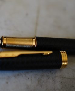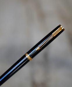 STYLO PLUME PARKER 75 LAQUE NOIRE MAT- PLUME OR MASSIF 18 CARATS FINE