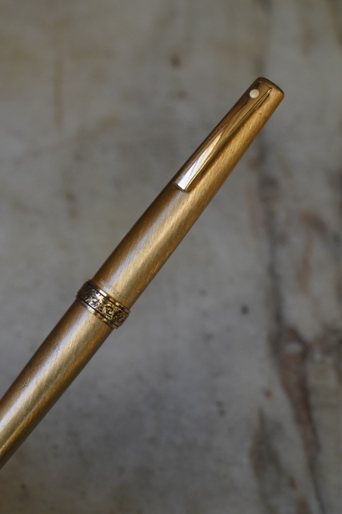 CHARMANT STYLO PLUME SHEAFFER LADY EN METAL BROSSE – PLUME EN OR MASSIF 18 CARATS