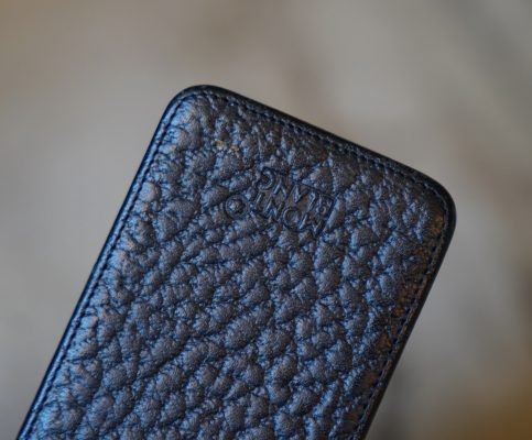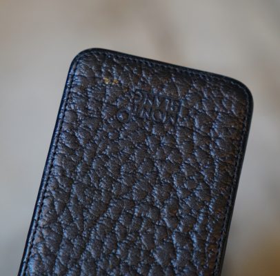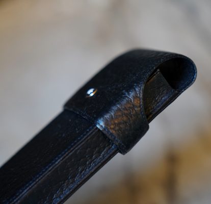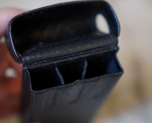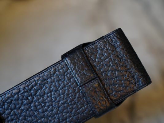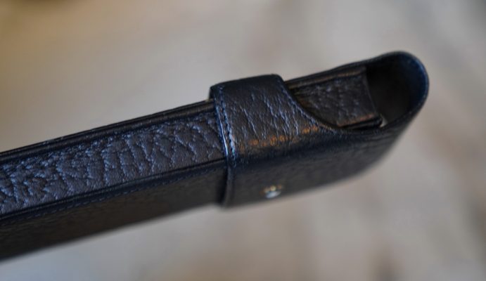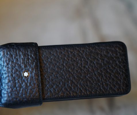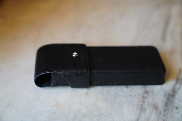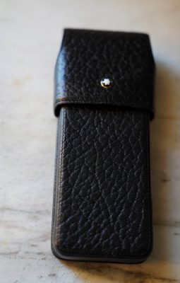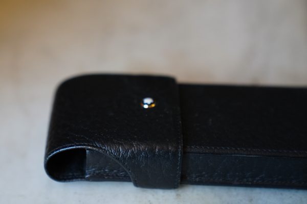 ETUI A STYLOS MONTBLANC EN CUIR NOIR A RABAT FIN. AUTRUCHE – MODELE TROIS PLACES