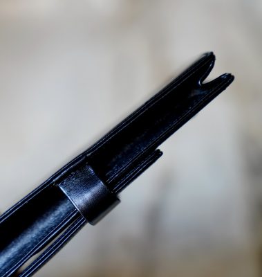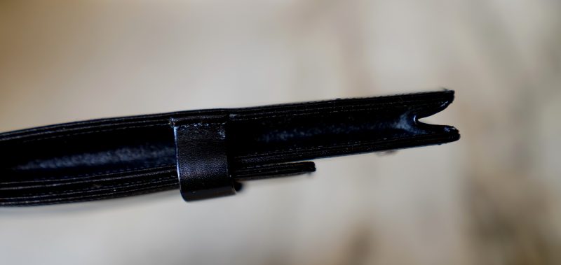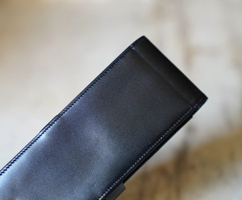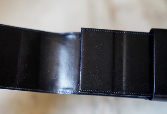 Réalisé en cuir noir, avec séparations intérieures