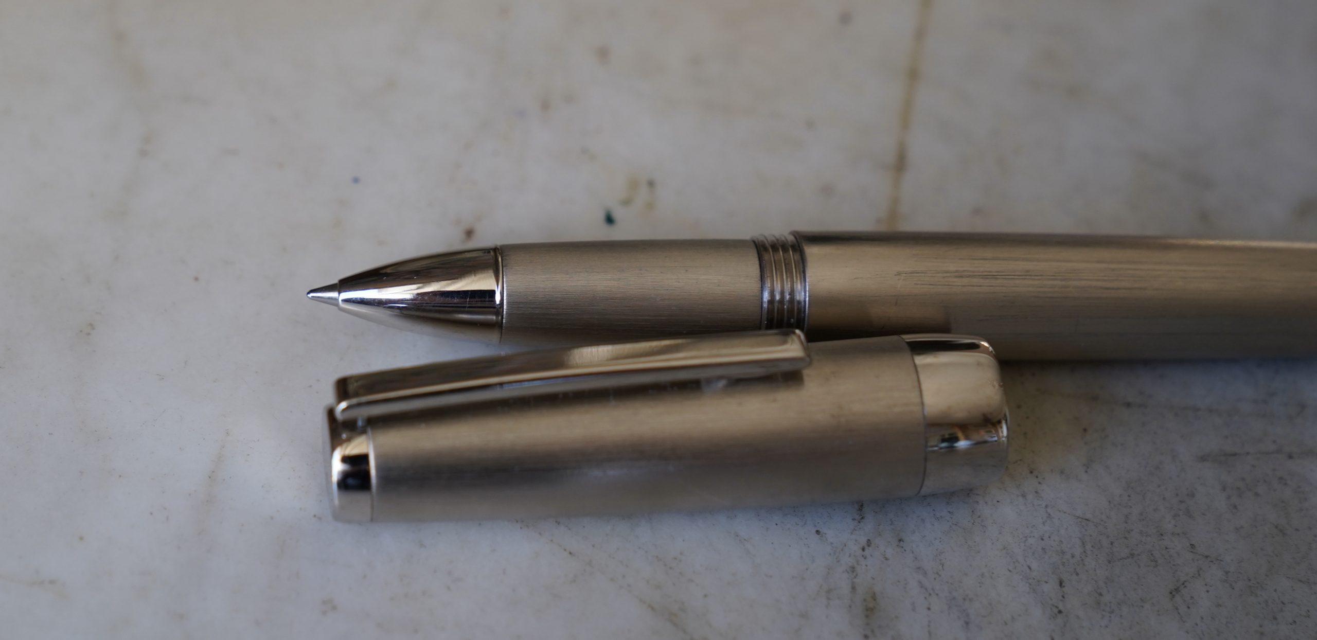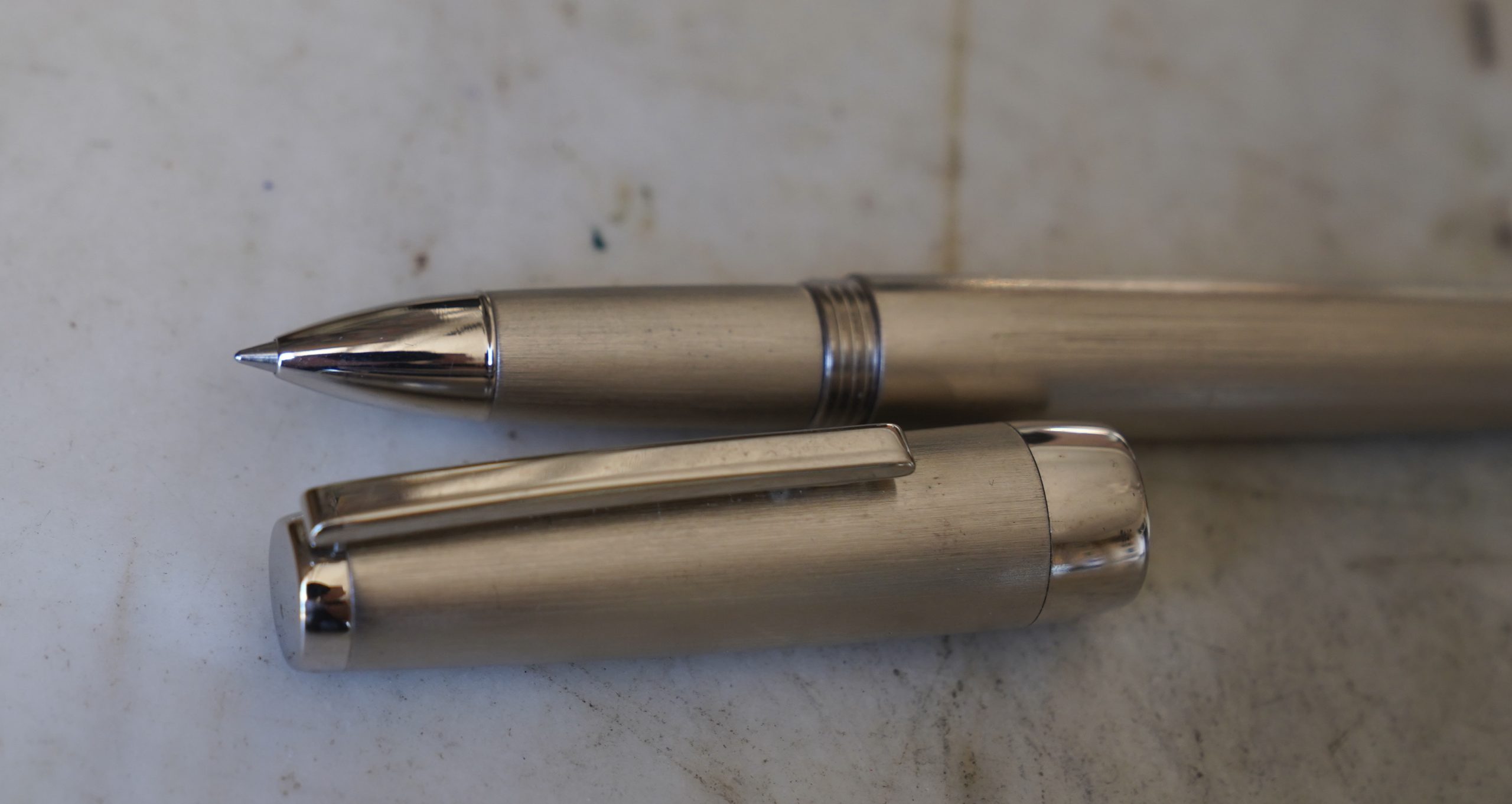 Stylo roller réalisé en métal Platiné, finition Brossée