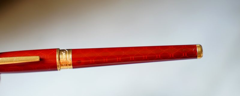 STYLO PLUME S.T. DUPONT OLYMPIO LAQUE DE CHINE ROUGE FINITION ALVEOLES – PLUME OR MASSIF 18 CARATS
