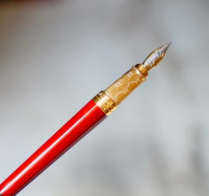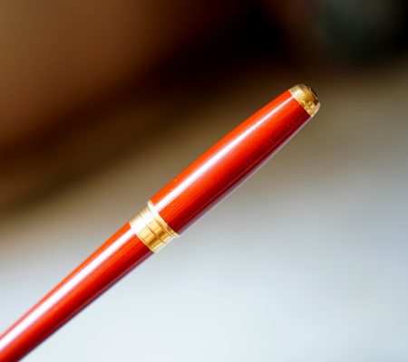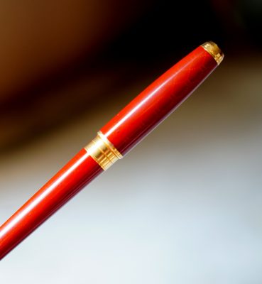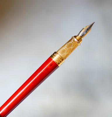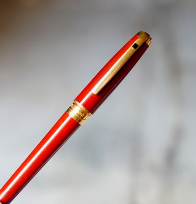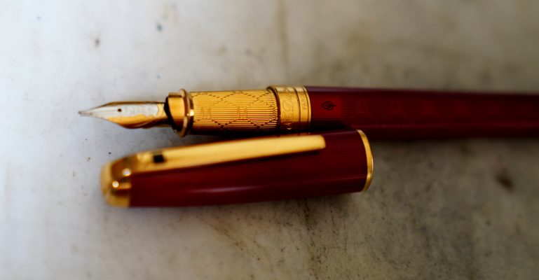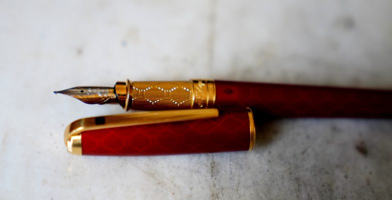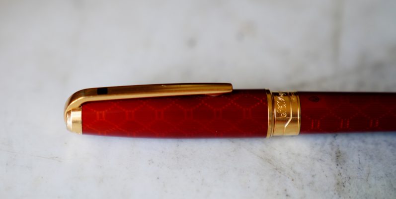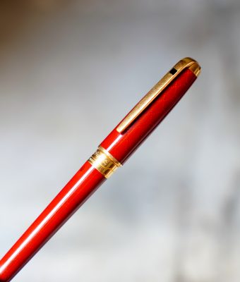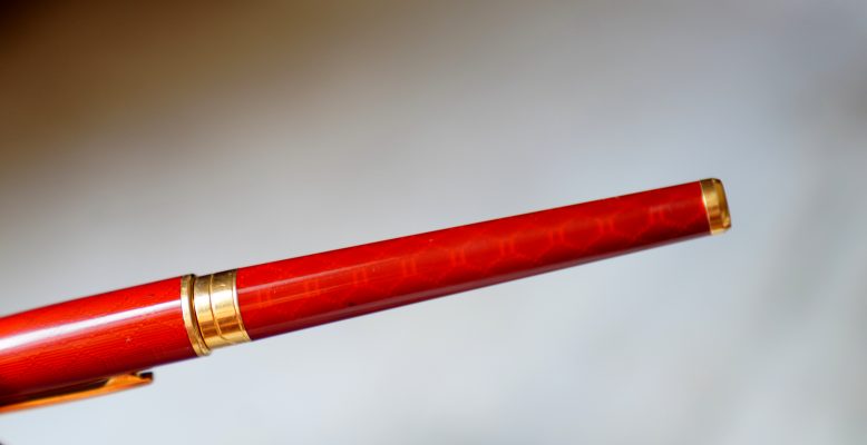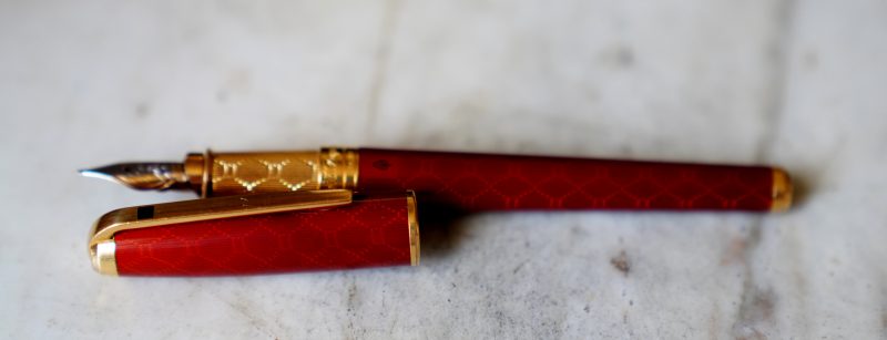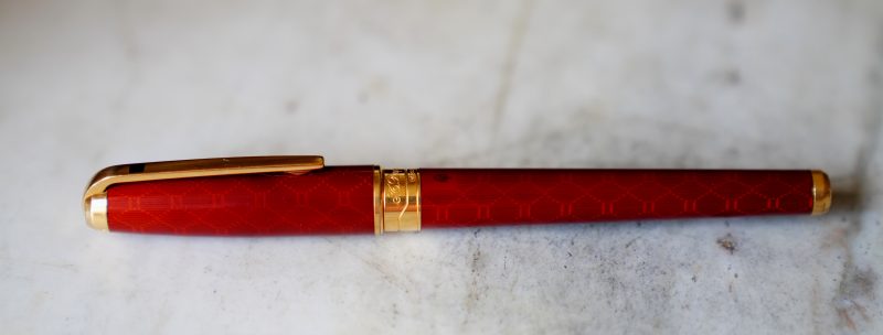 STYLO PLUME S.T. DUPONT OLYMPIO LAQUE DE CHINE ROUGE FINITION ALVEOLES – PLUME OR MASSIF 18 CARATS