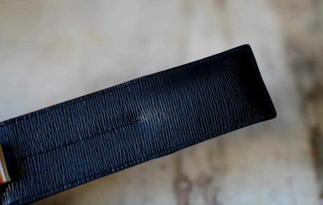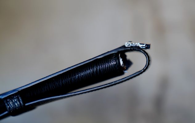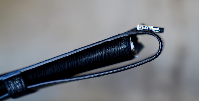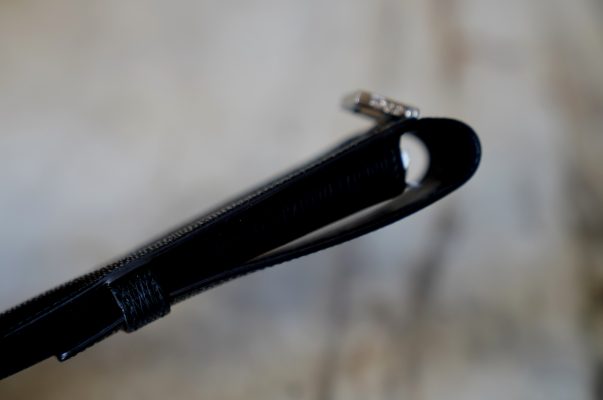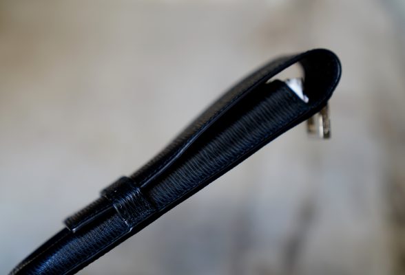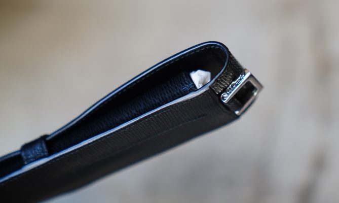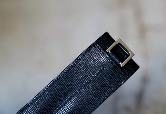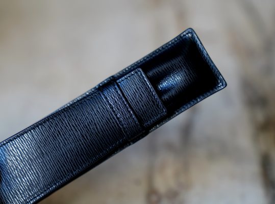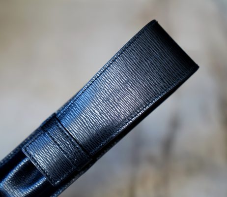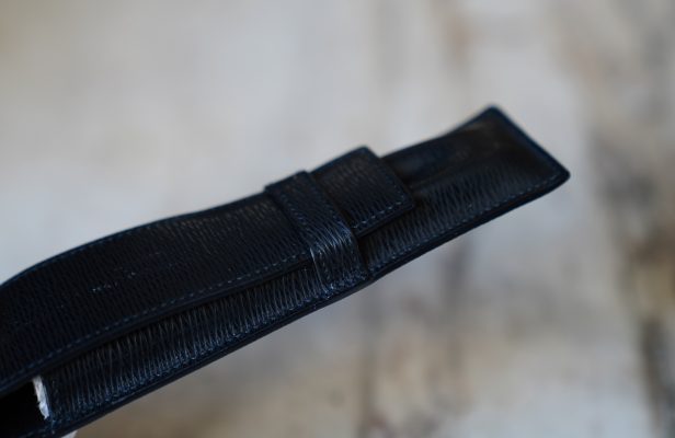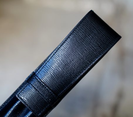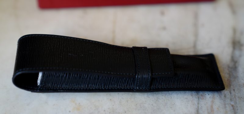 Etui à stylos en cuir noir, à rabat avec anneau en métal