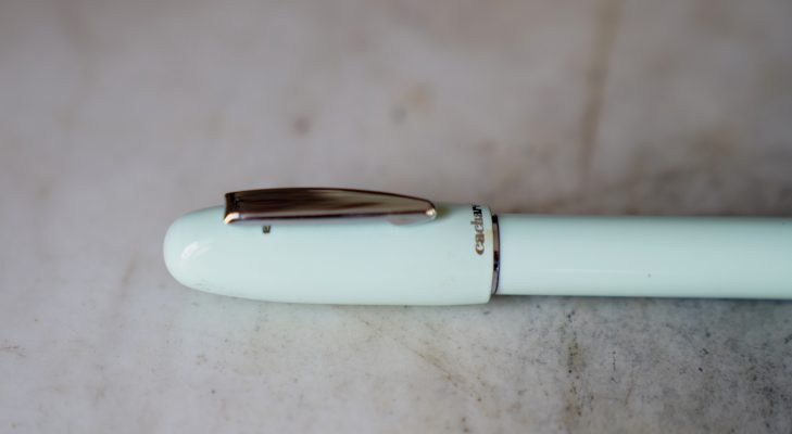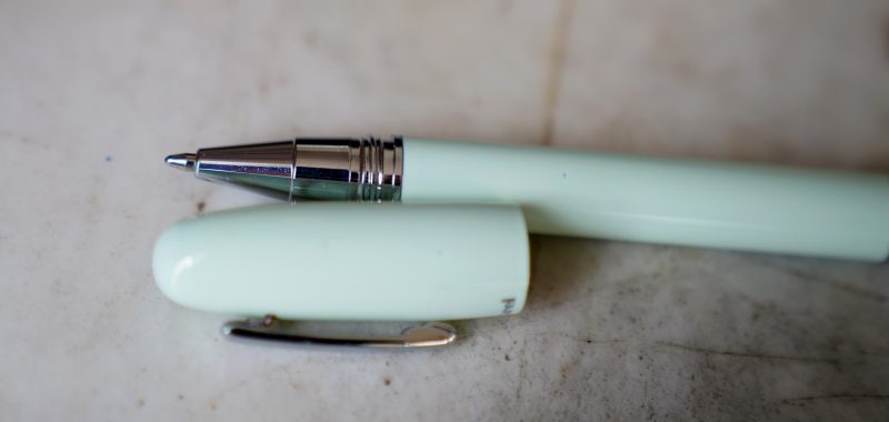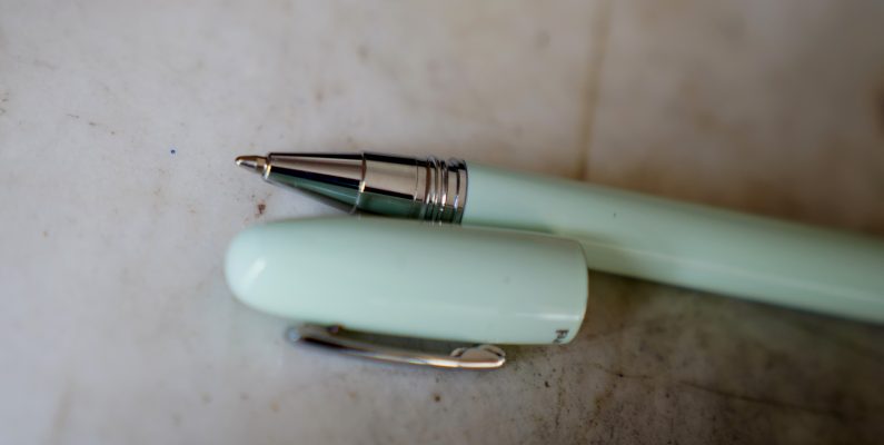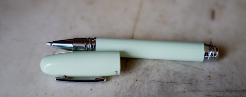 STYLO BILLE CACHAREL EN LAQUE VERT CELADON – FINITION CHROMEE – 118 MM