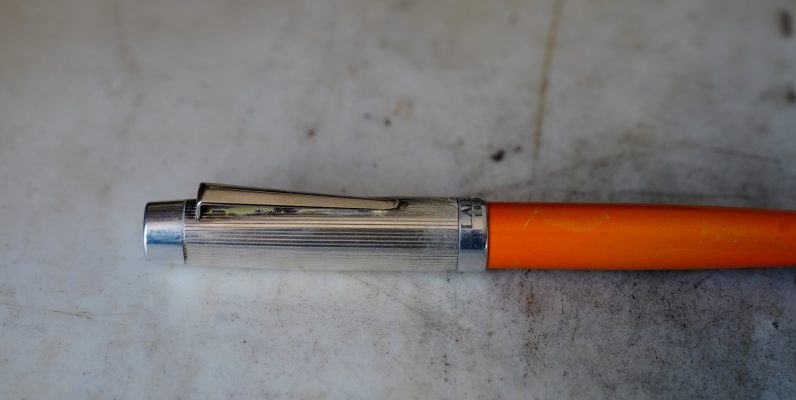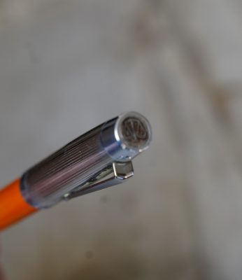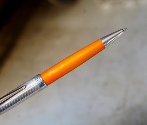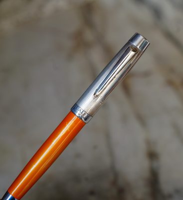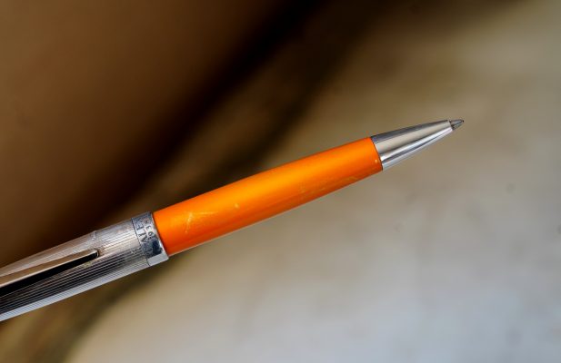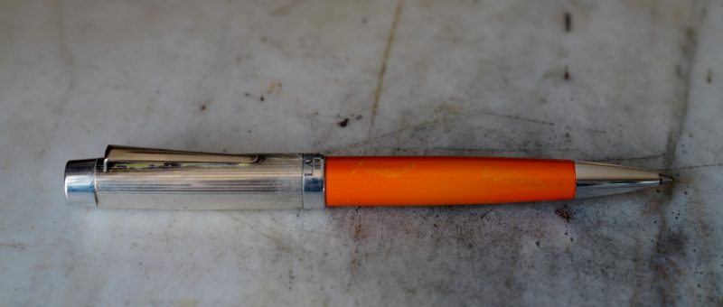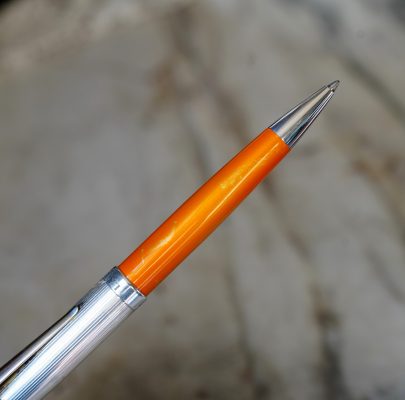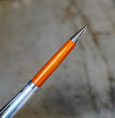 Stylo bille réalisé en Résine Orange, finition poussière d’Or
