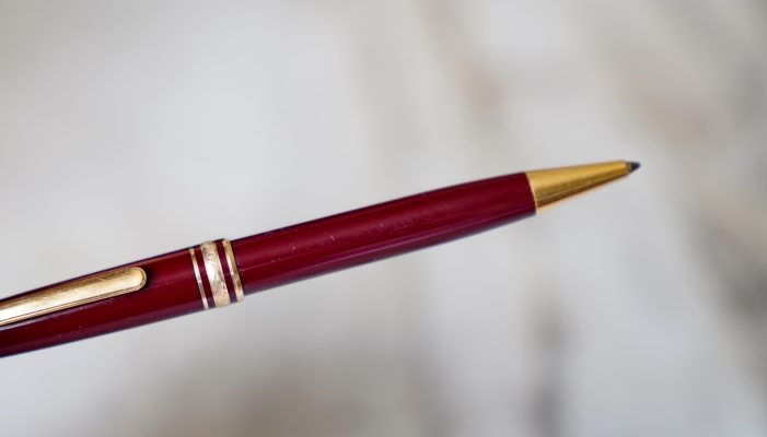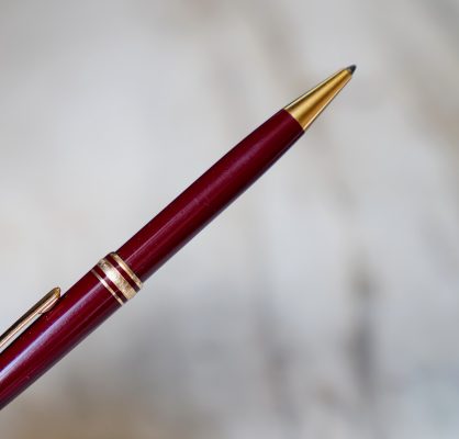 STYLO BILLE MONTBLANC MEISTERSTÜCK EN RESINE BORDEAUX & PL. OR 18 CARATS