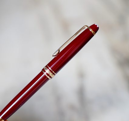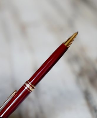 STYLO BILLE MONTBLANC MEISTERSTÜCK RESINE BORDEAUX & PL. OR 18 CARATS