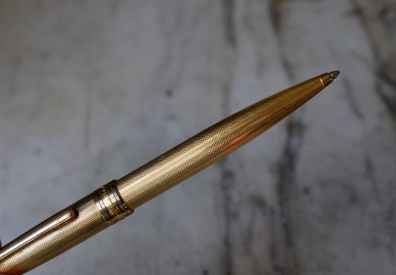 STYLO BILLE MONTBLANC SOLITAIRE PL. OR 18 CARATS – FINITION LIGNEE- RARE VINTAGE