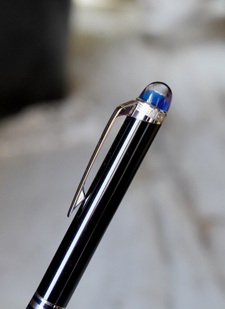 L’étoile emblématique de Montblanc est en suspension dans le capuchon, avec un entourage bleu qui évoque la beauté de notre monde. C’est un détail subtil qui témoigne de l’attention portée aux moindres détails de ce stylo.