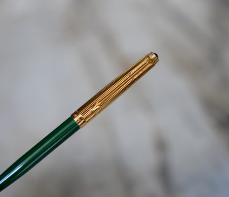 Finition Laque verte & capuchon pl. Or, finition Godrons