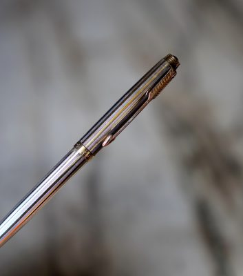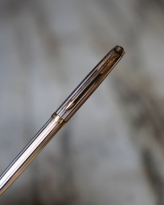 STYLO BILLE PARKER 75 VENDÔME EN ARGENT & VERMEIL 925 – FINITION LIGNEE – CABOCHON NOIR