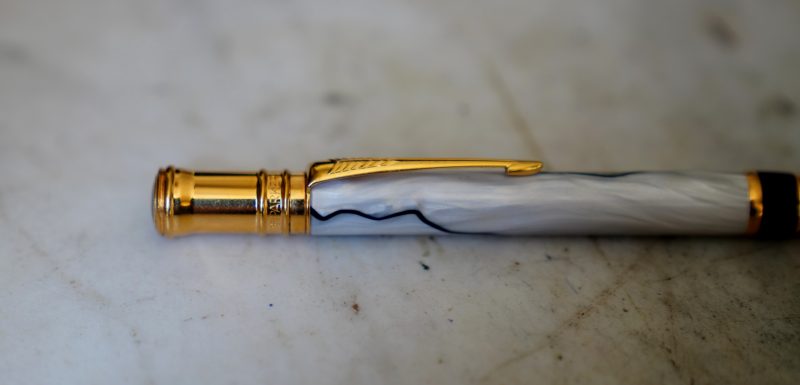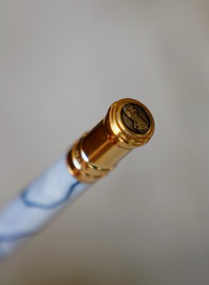 Le dessus du stylo est joliment décoré d’un médaillon gravé / Duofold /