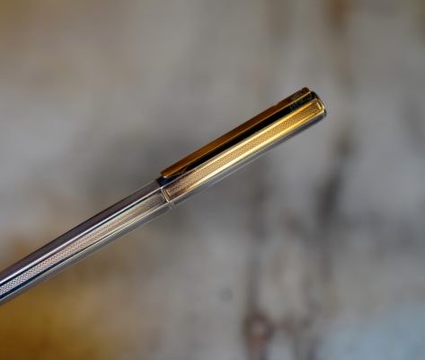 Réalisé en métal plaqué Argent, finition Guillochée