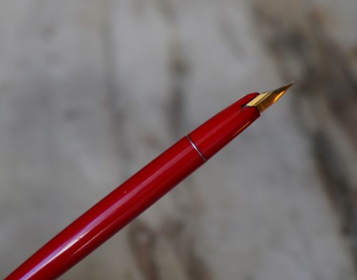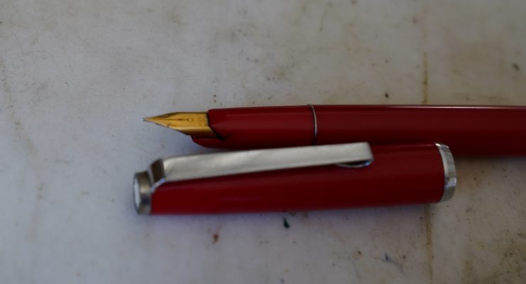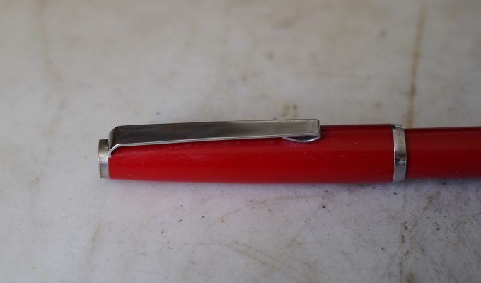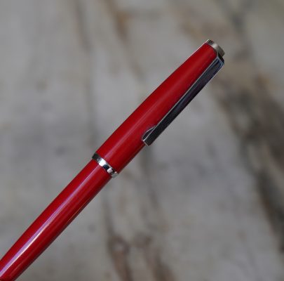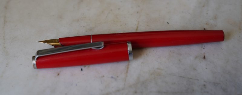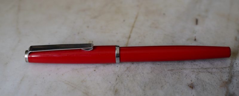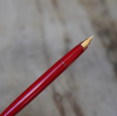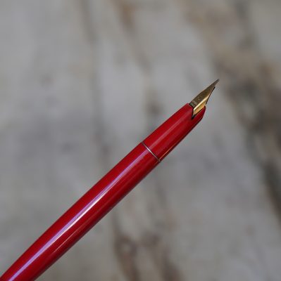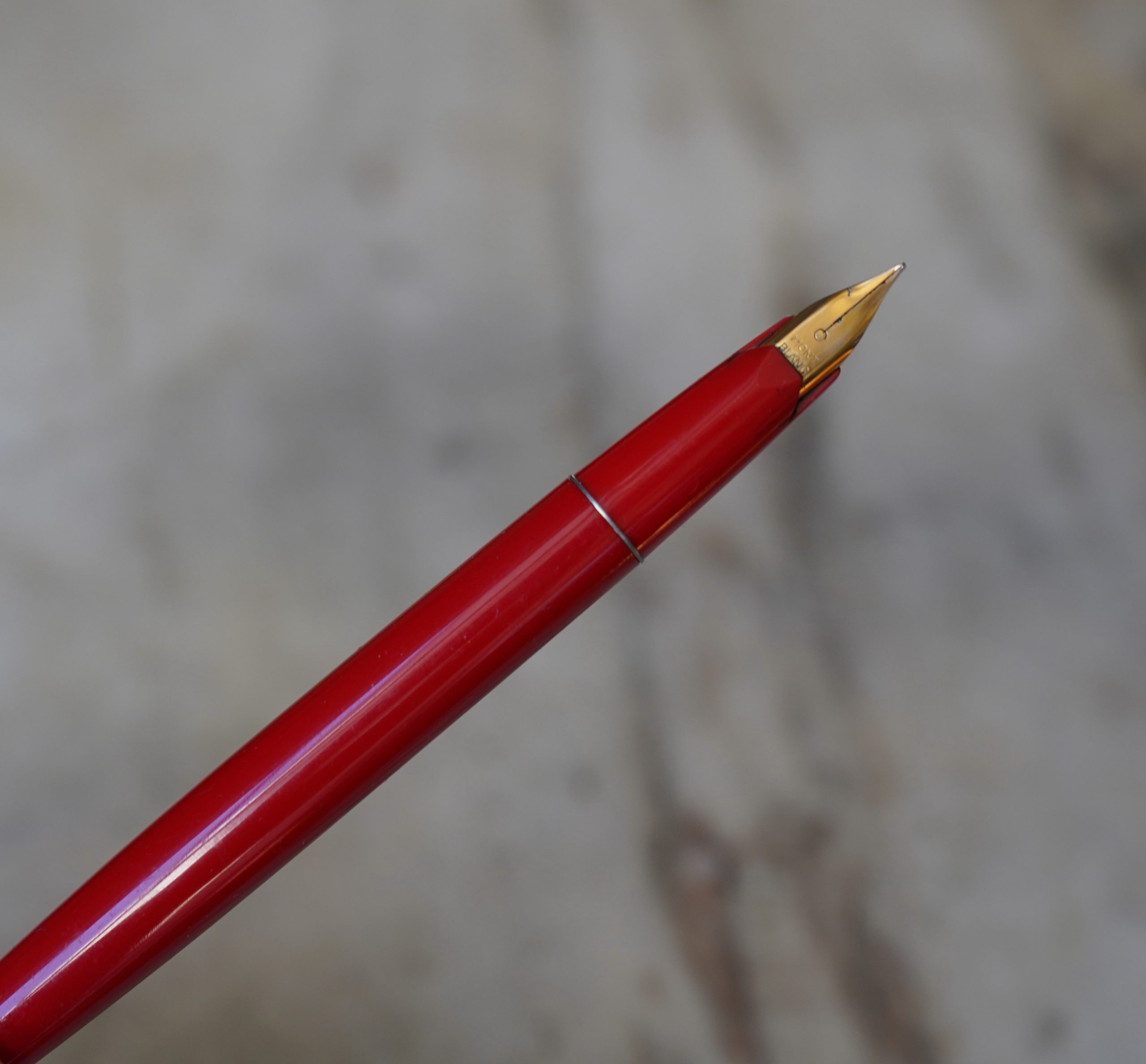 STYLO PLUME MONTBLANC EN RESINE ROUGE & CHROME – RARE VERSION DES ANNEES 1970