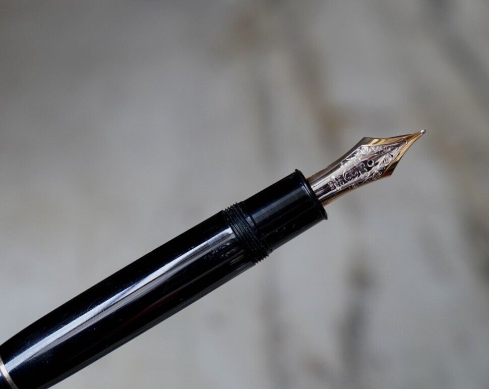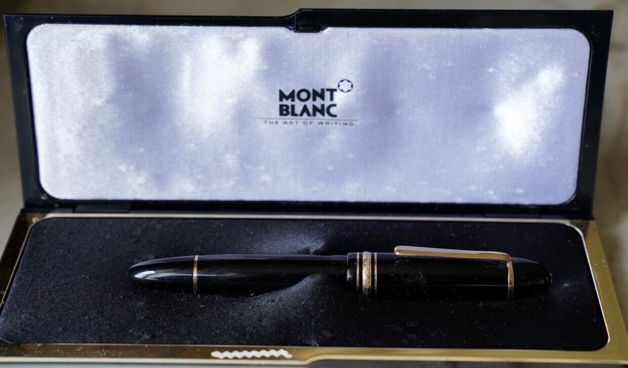 Découvrez le Montblanc Meisterstück 149, un stylo plume vintage en résine précieuse noire avec finition plaquée or 18 carats. Sa plume en or massif 14 carats, gravée avec la mention « 4810 – M – 14 C – MONTBLANC – 585 », offre une expérience d’écriture fluide. En bon état et fonctionnant parfaitement, il mesure 148 mm de long et est livré dans une boîte Montblanc. Ajoutez une touche de luxe à votre collection de stylos avec ce Meisterstück 149.