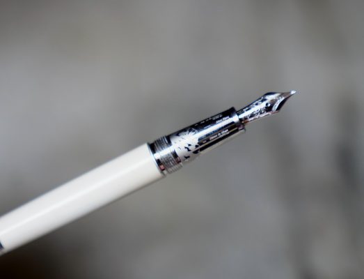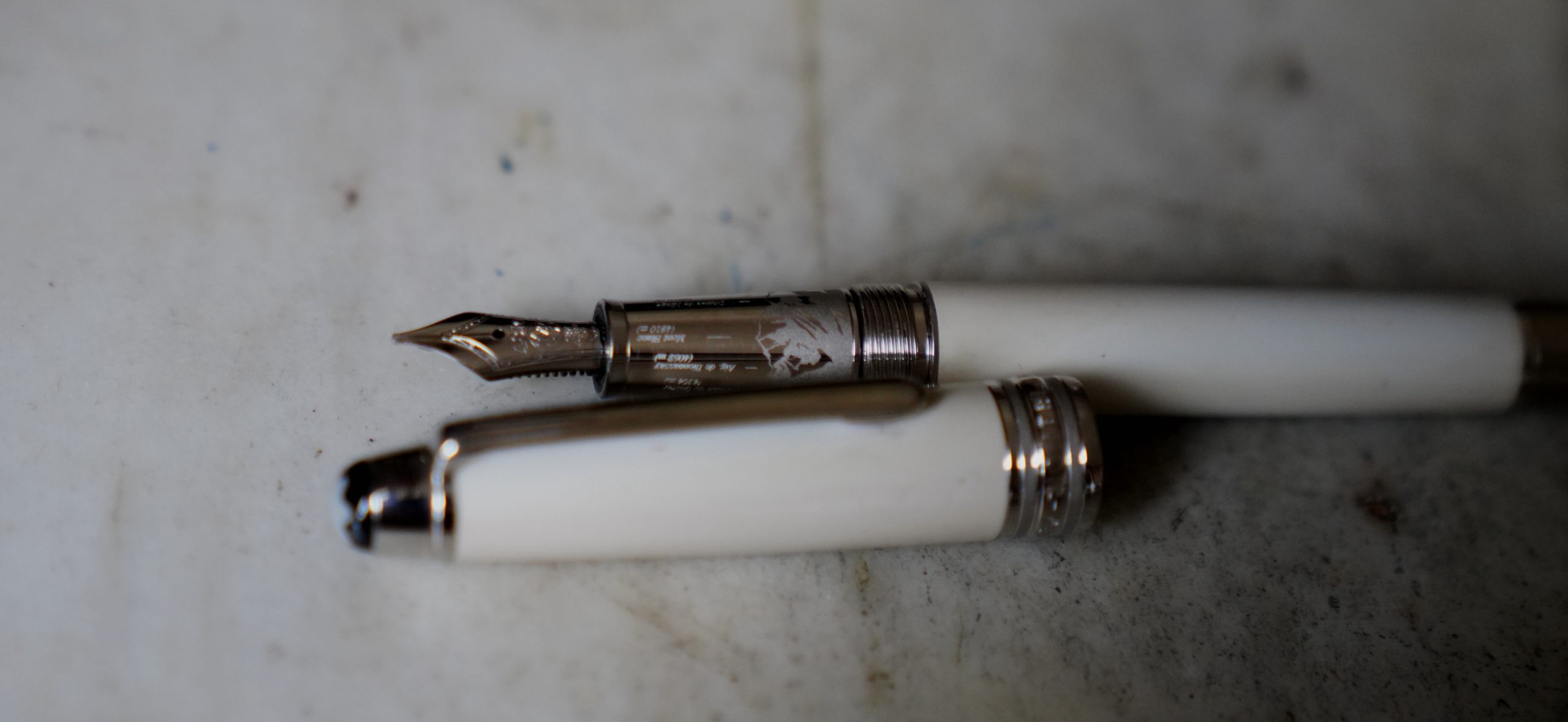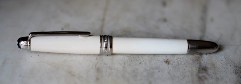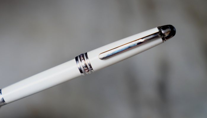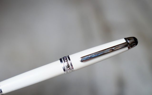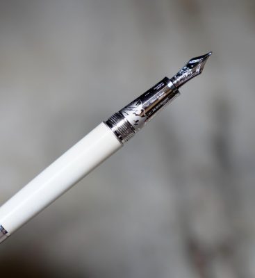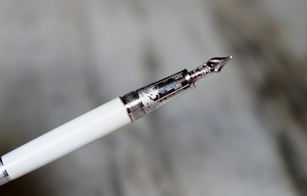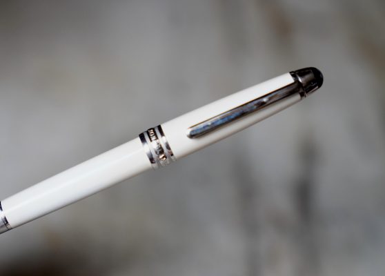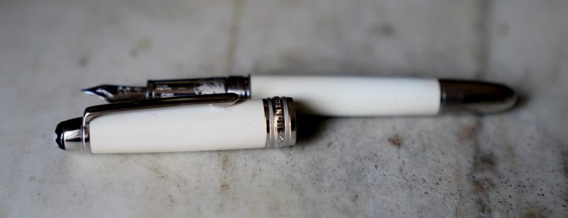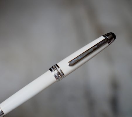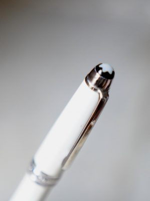 Stylo plume réalisé en Laque précieuse blanche, attributs finition Platinum