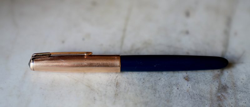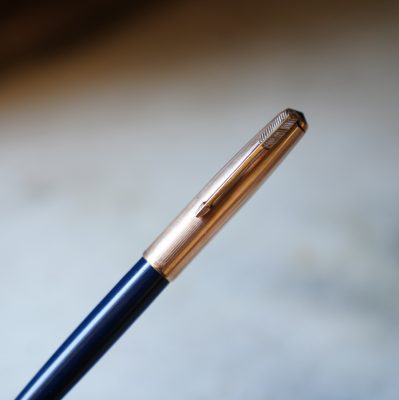 / PARKER 51 – TO FILL PRESS RIBBED BAR FIRMLY 4 TIMES – USE DRY WRITING SUPERCHROME INK HOLDING PEN POINT DOWN – WIPE POINT WITHE SOFT TISSUE – THE PARKER PEN CO. – MADE IN U.S.A. /