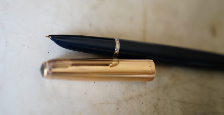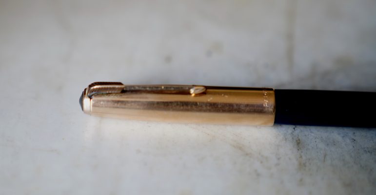 / PARKER 51 – TO FILL PRESS RIBBED BAR FIRMLY 4 TIMES – USE DRY WRITING SUPERCHROME INK HOLDING PEN POINT DOWN – WIPE POINT WITHE SOFT TISSUE – THE PARKER PEN CO. – MADE IN U.S.A. /