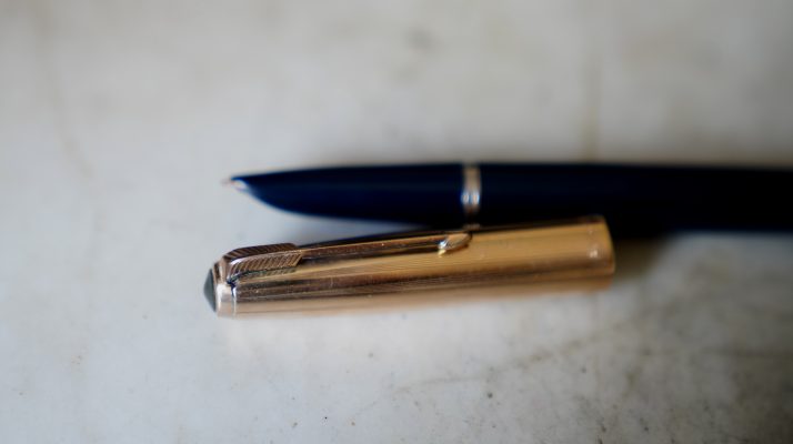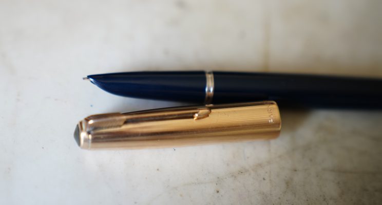STYLO PLUME PARKER 51 RESINE BLEU FONCE & PL. OR – PLUME OR MOYENNE