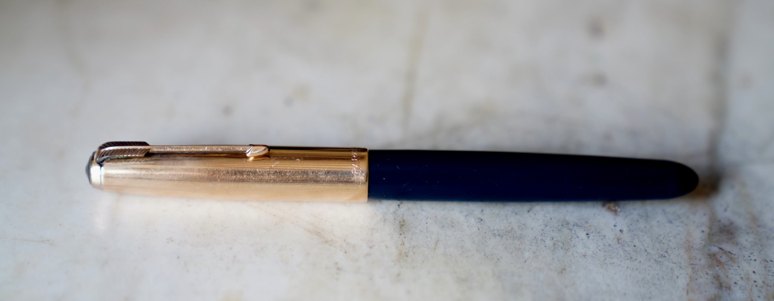 STYLO PLUME PARKER 51 RESINE BLEU FONCE & PL. OR – PLUME OR MOYENNE