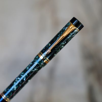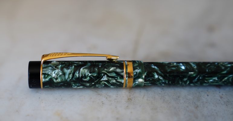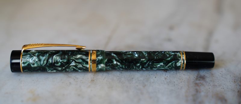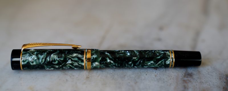 STYLO PLUME PARKER DUOFOLD CENTENNIAL VERT MARBRE – PLUME EN OR MASSIF 18 CARATS