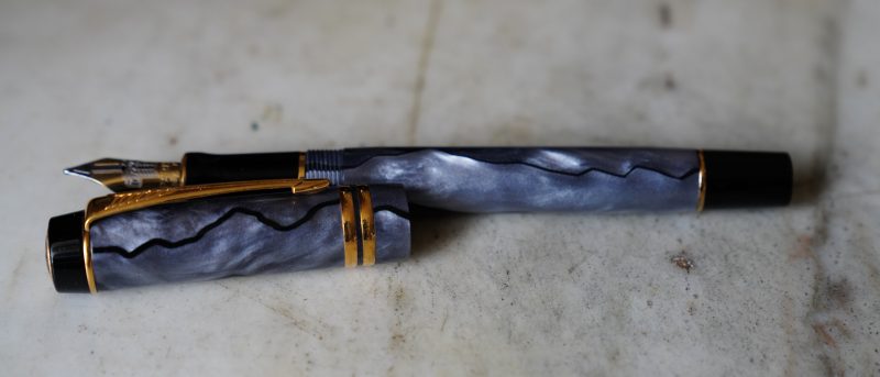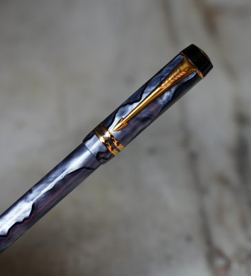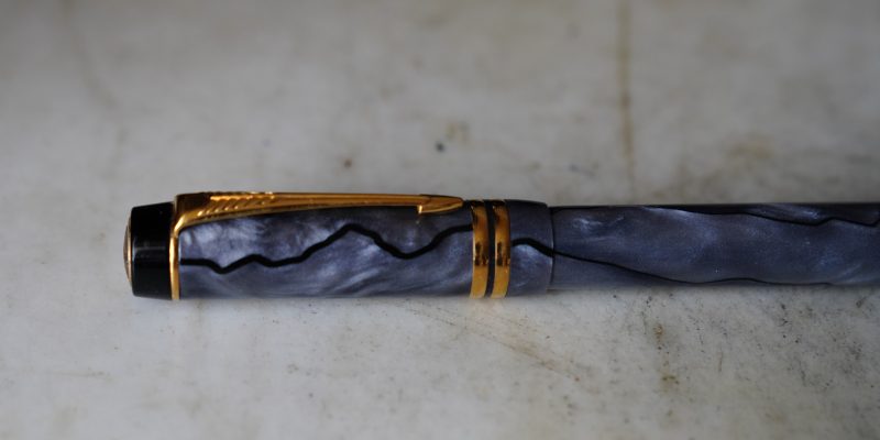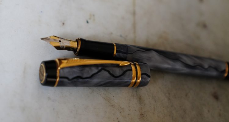 STYLO PLUME PARKER DUOFOLD PEARL GREY- PLUME EN OR MASSIF 18 CARATS