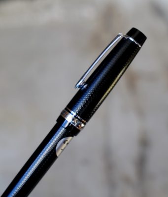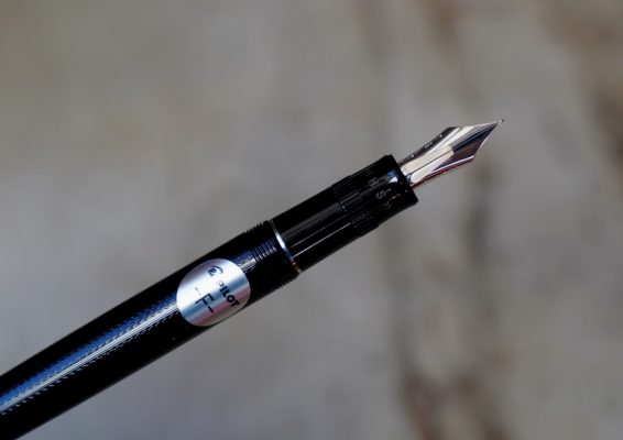 La particularité de ce modèle est que la plume est réglable, grâce à une languette située sur la plume, que l’on actionne grâce à une bague tournante située sur la section