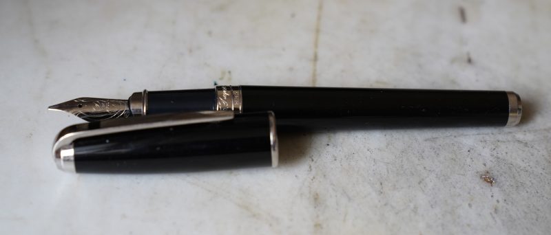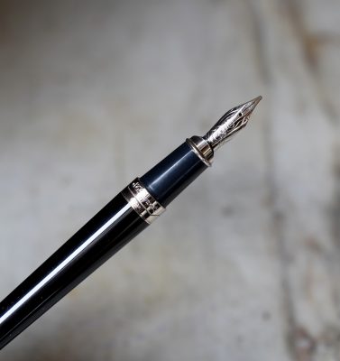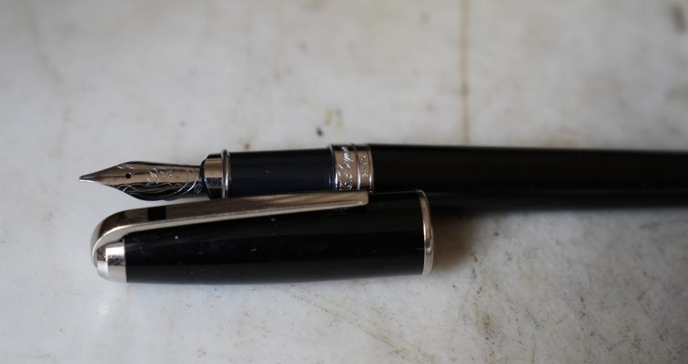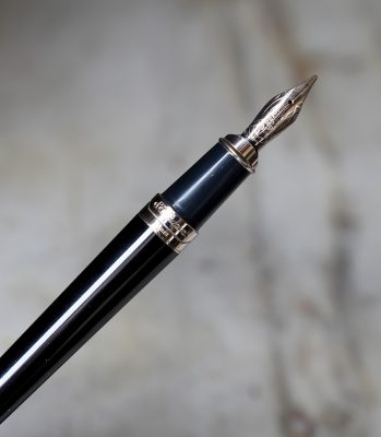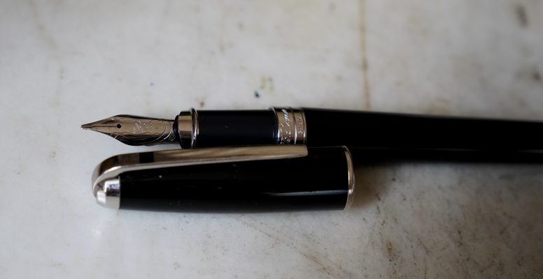STYLO PLUME S.T. DUPONT OLYMPIO XL LAQUE DE CHINE NOIRE- PLATINUM – PLUME OR MASSIF 18 CARATS