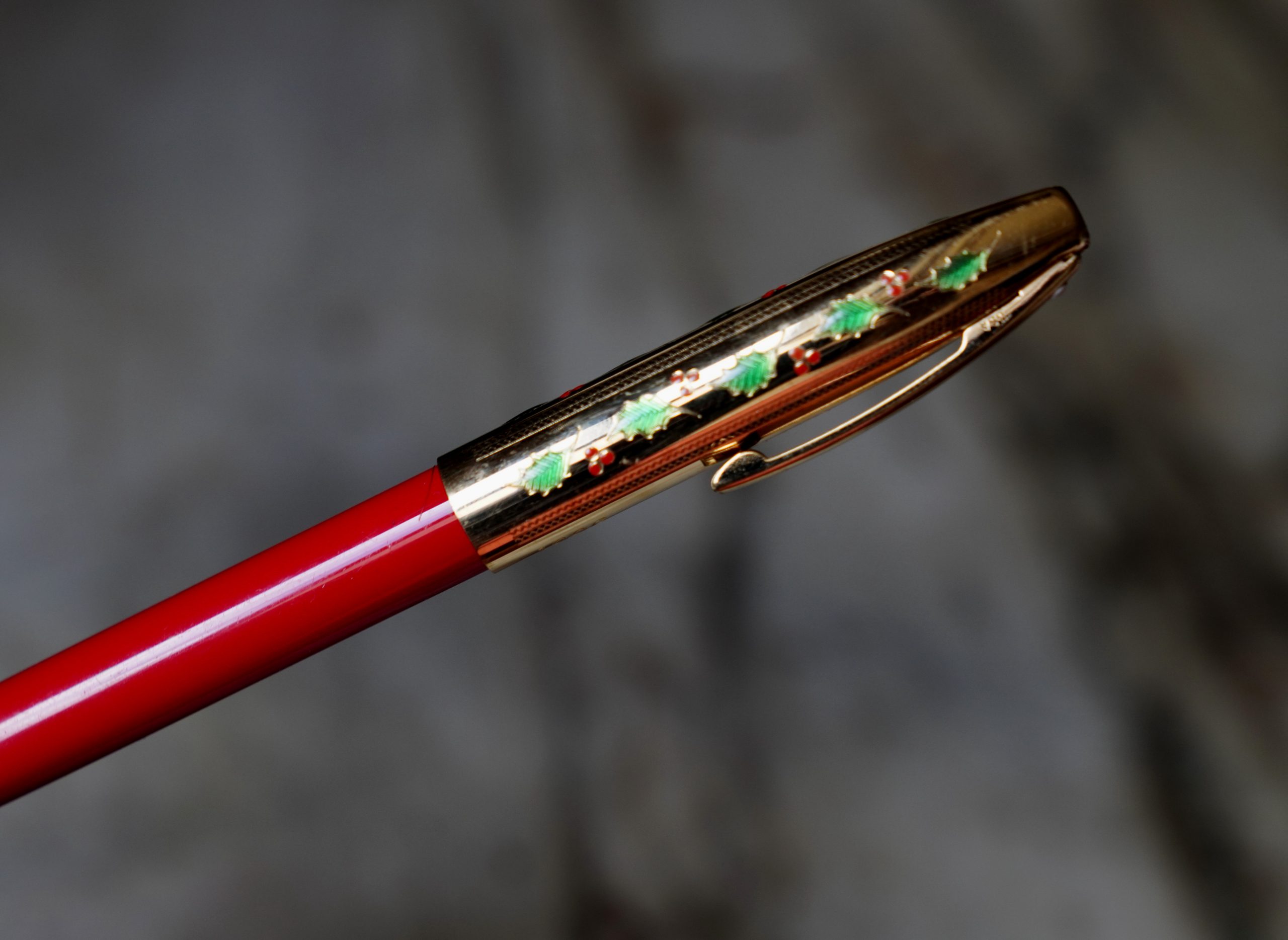 Réalisé en résine rouge vif, capuchon plaqué Or, Joliment ornée de feuilles