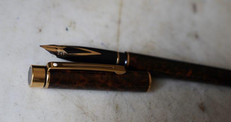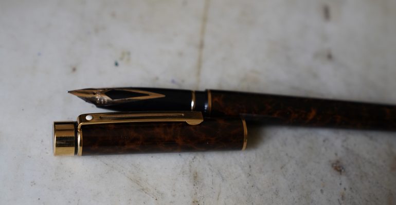 STYLO PLUME SHEAFFER TARGA LAQUE THUYA RONCE – PLUME EN OR MASSIF 14 CARATS