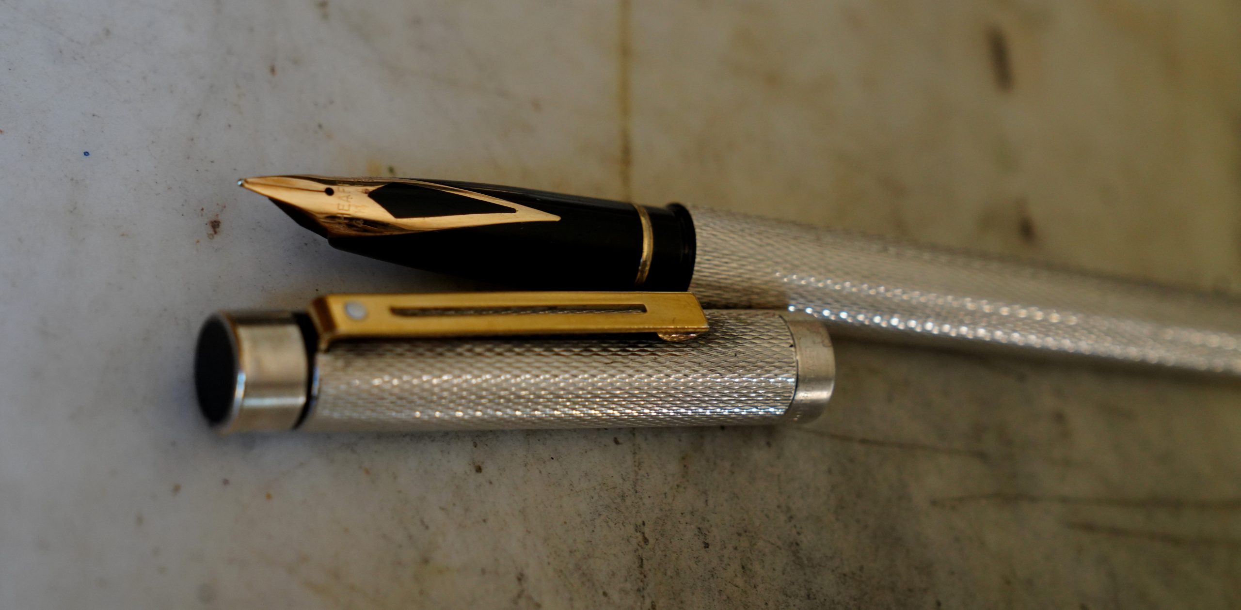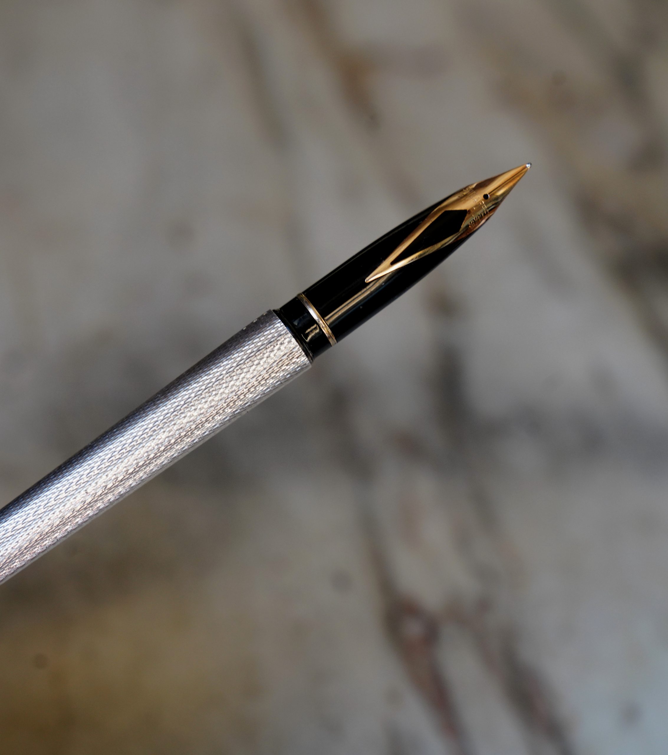STYLO PLUME SHEAFFER TARGA PL. ARGENT – FINITION GRAIN D’ORGE – PLUME EN OR MASSIF 14 CARATS