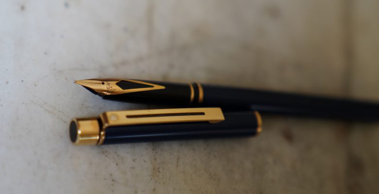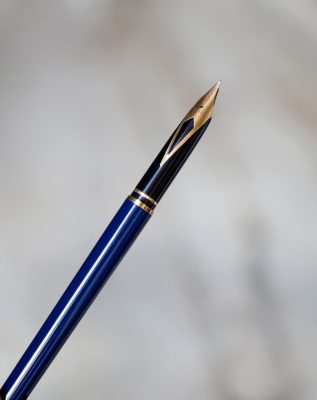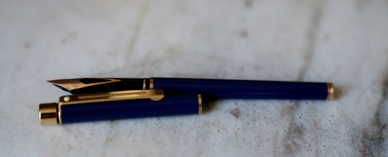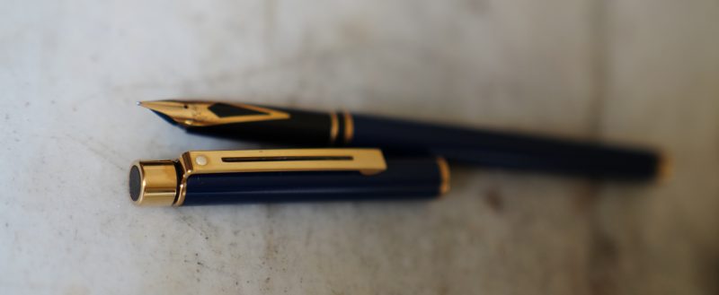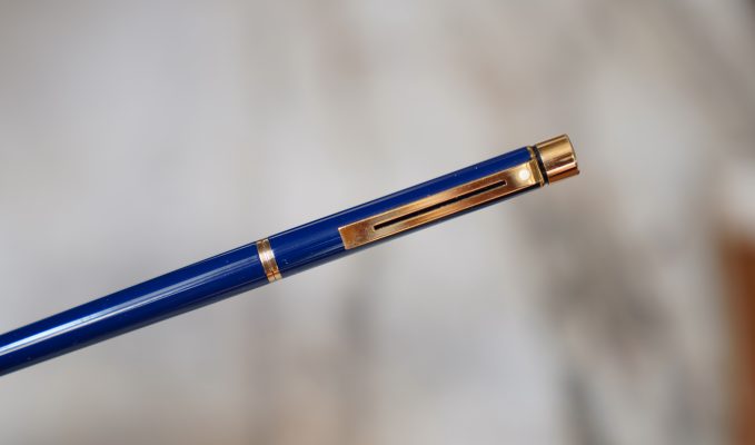 STYLO PLUME SHEAFFER TARGA SLIM LAQUE HERMES BLUE – PLUME EN OR MASSIF 18 CARATS