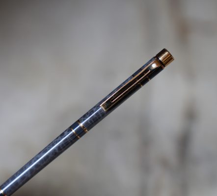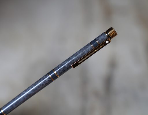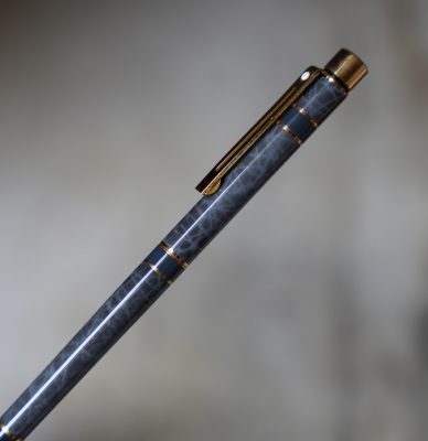 Réalisé en Laque grise marbrée avec trois larges anneaux noirs