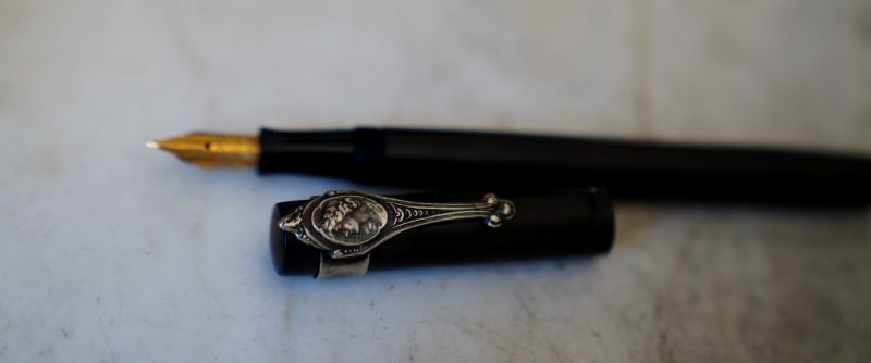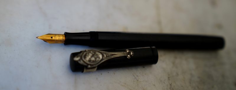 STYLO PLUME WATERMAN 54 A LEVIER – EN EBONITE NOIRE – AGRAFE VISAGE ORNE DE LAURIERS
