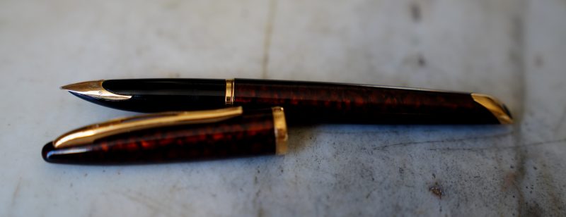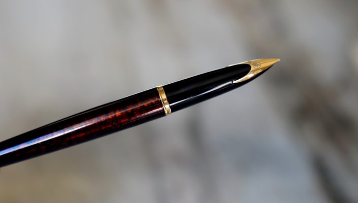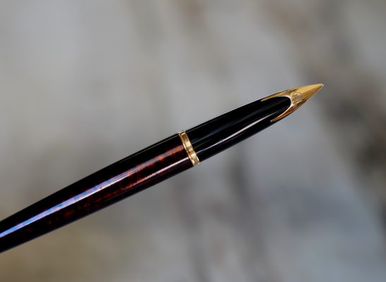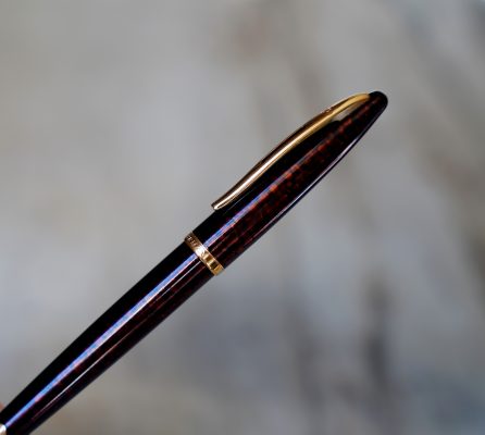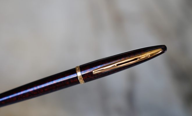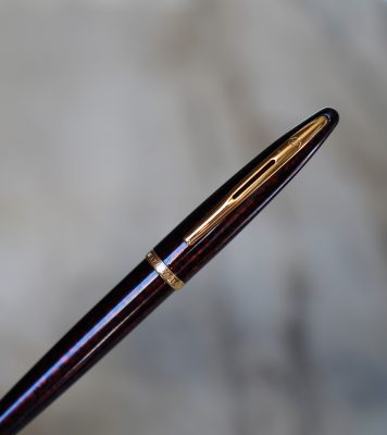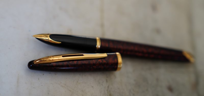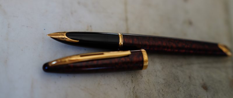 STYLO PLUME WATERMAN CARENE EN LAQUE BRUNE MOIREE – PLUME EN OR MASSIF 18 CARATS