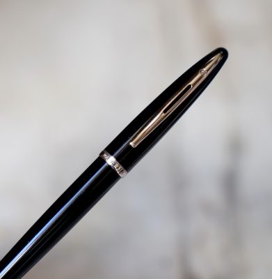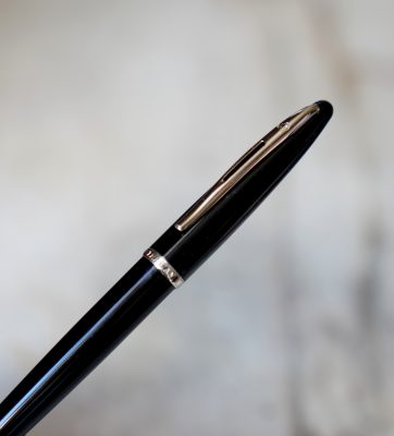 STYLO PLUME WATERMAN CARENE LAQUE NOIRE FINITION PLATINUM – PLUME EN OR MASSIF 18 CARATS