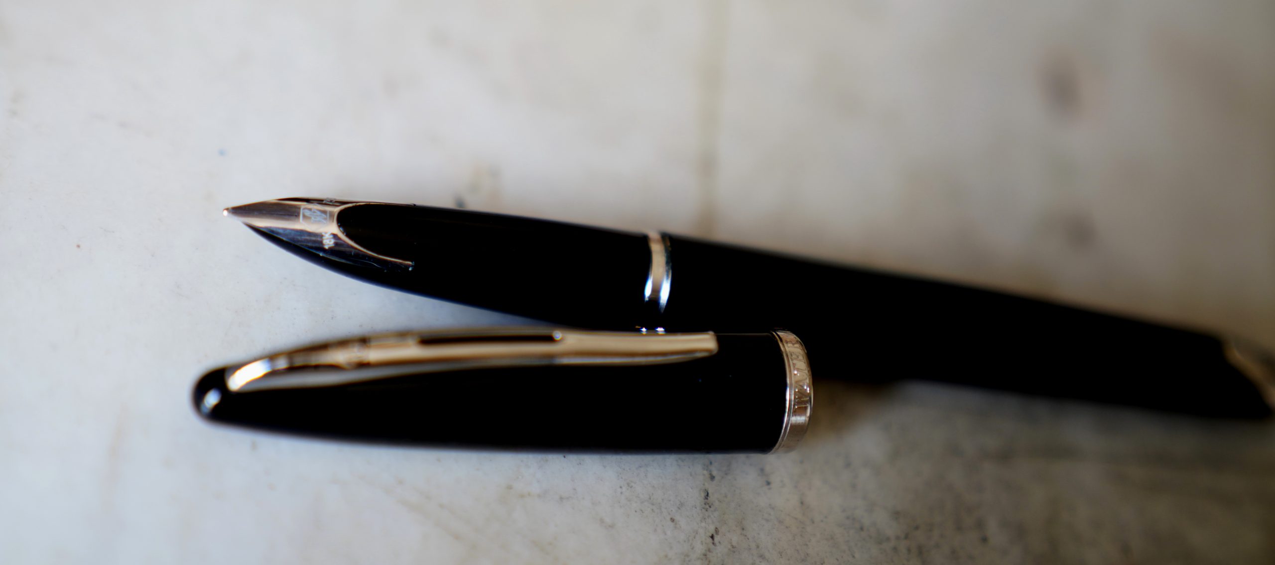 Stylo plume réalisé en Laque noire, Finition Platinum
