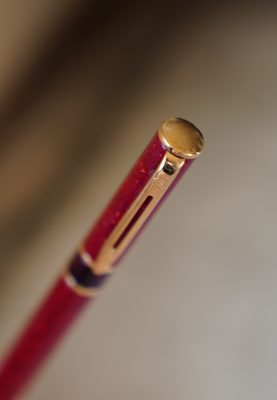 Stylo plume réalisé en Laque rouge marbrée