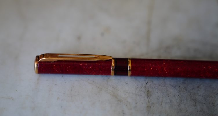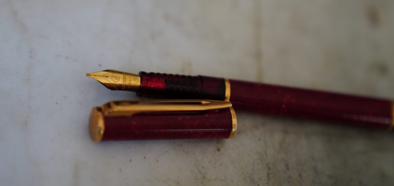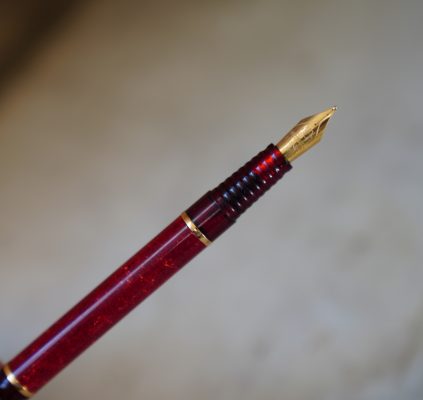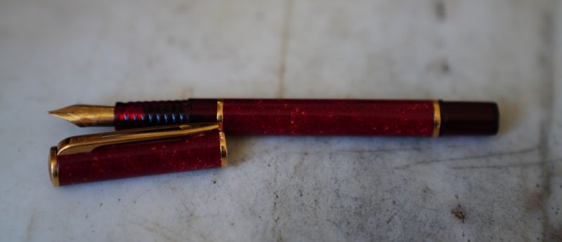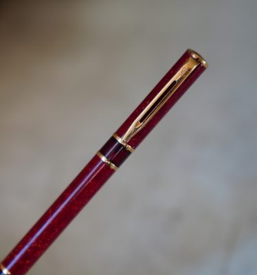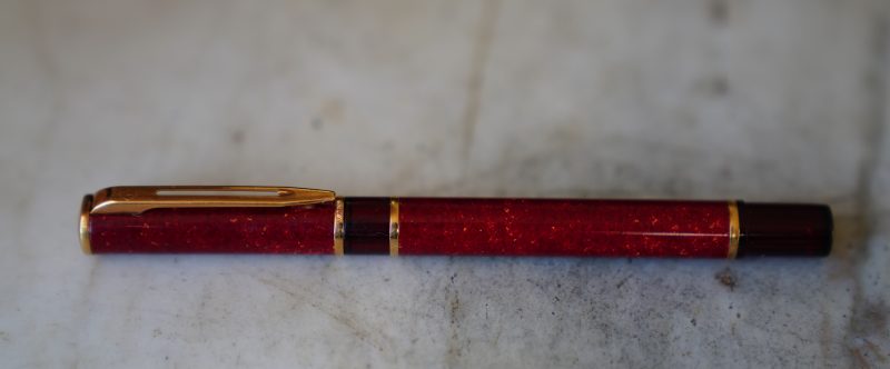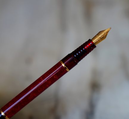 Stylo plume réalisé en Laque rouge marbrée