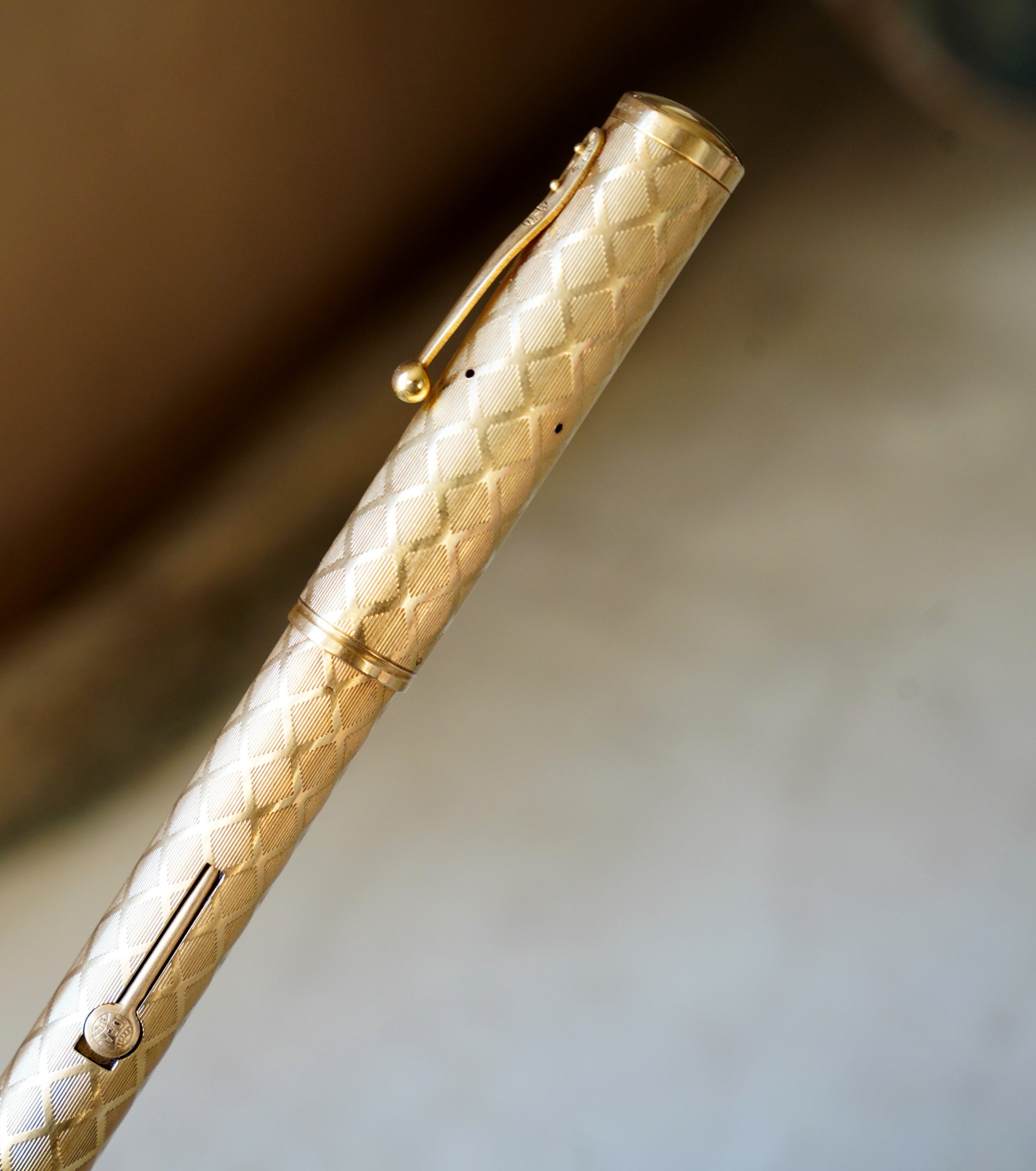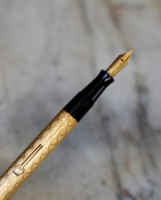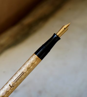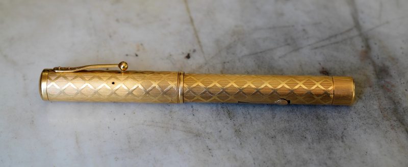 Stylo plume ancien à levier, au joli décor de losanges finement ciselés